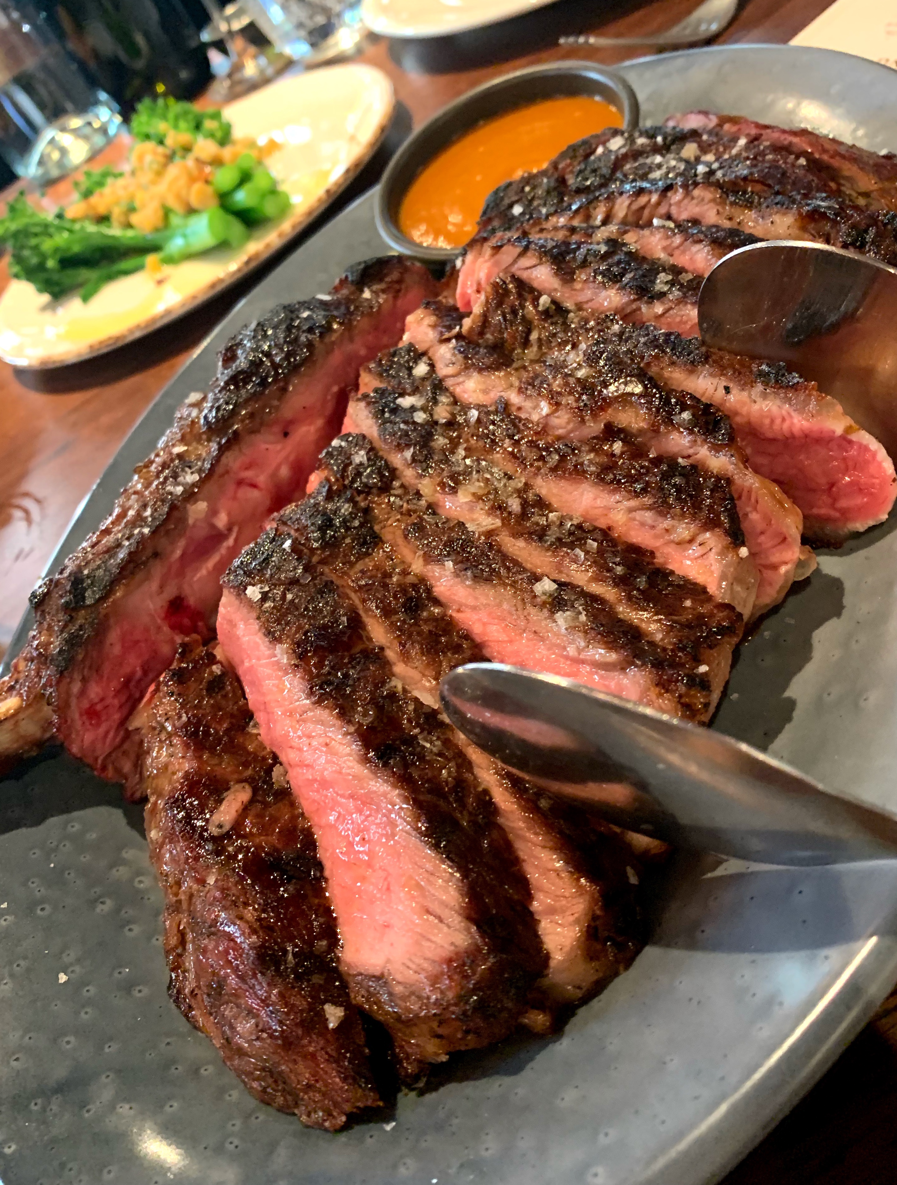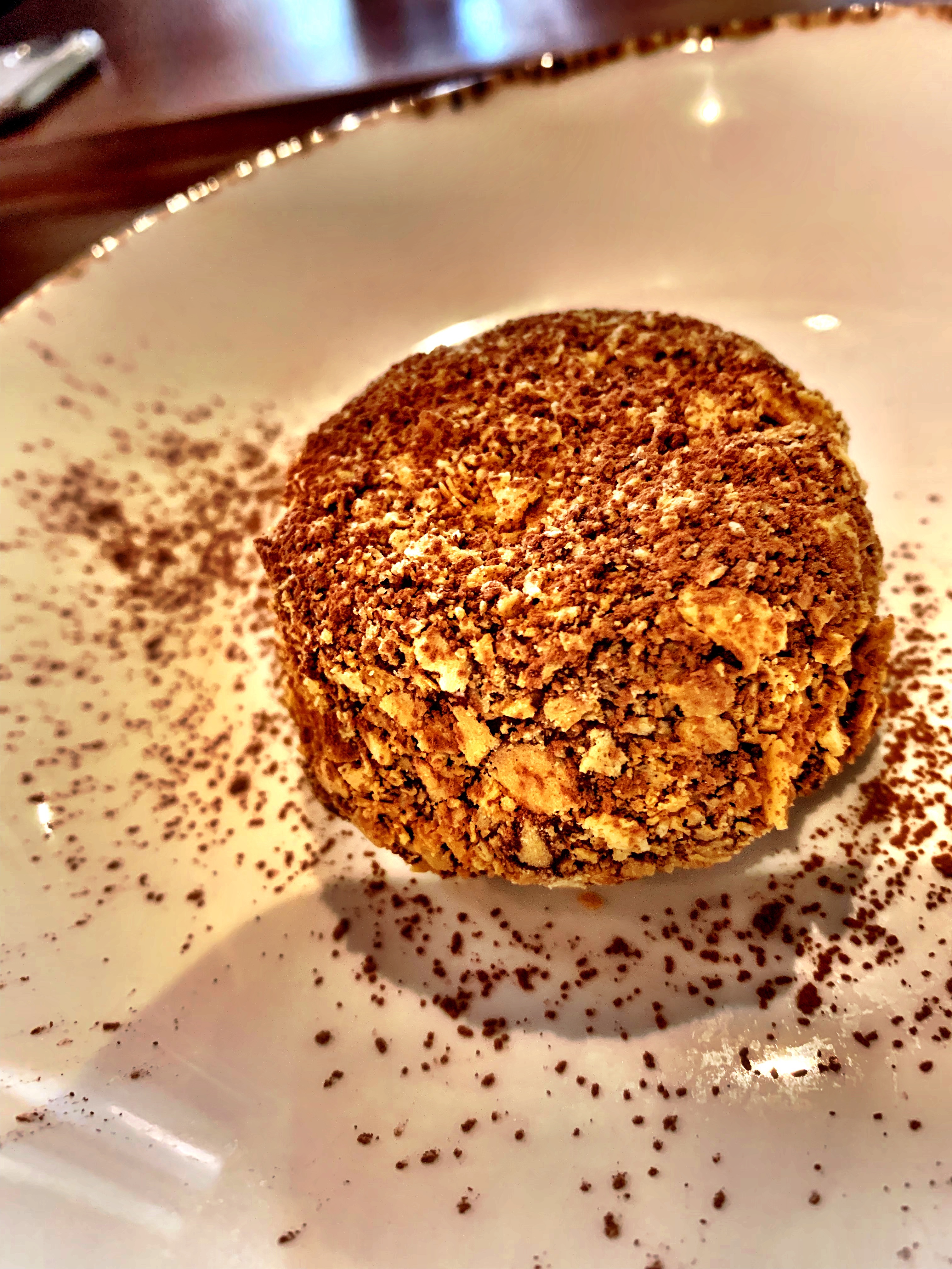 The rib eye was medium rare and served cooked to perfection, the broccolini tender and not overcooked, the potatoes were crisp on the outside and fluffy in the inside. The band took a quick break while we discussed the gorgeous flatware, asked for a toothpick and struggled through what is now known as toothpickgate (don’t ask!) Dessert was not included on the set sharing menu but I needed something sweet and as the waitress took away our plates I ordered us a peanut nougat crunch with 5 spoons. It was so good Patrick & Christine ordered 3 more to take home.