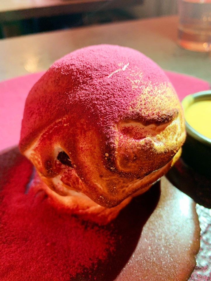 This was nothing like that! A ball of delicious brownie with a gooey chocolate centre covered in torched marshmallow. It was sprinkled with a dusting of beetroot powder and served with a side of warm peanut butter. A masterpiece of deliciousness and oh so rich! A fitting end to our brunch date.