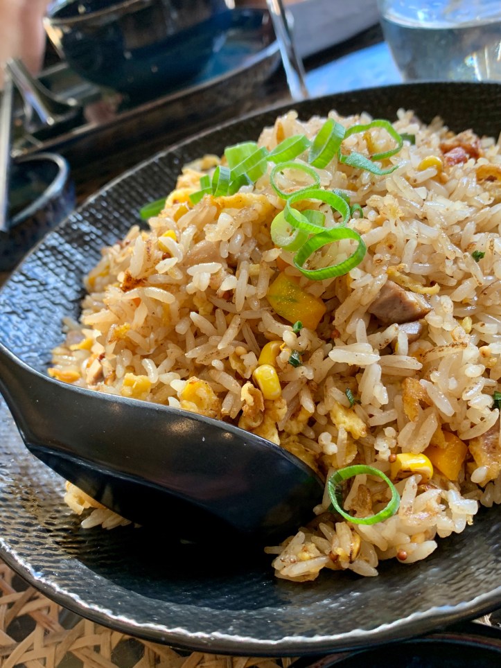 The final dishes started to arrive. Duck and sweet corn fried rice, hot and spicy chicken and an amazing crispy eggplant. More rosé was consumed, laughter abounded and musical theatre was discussed.