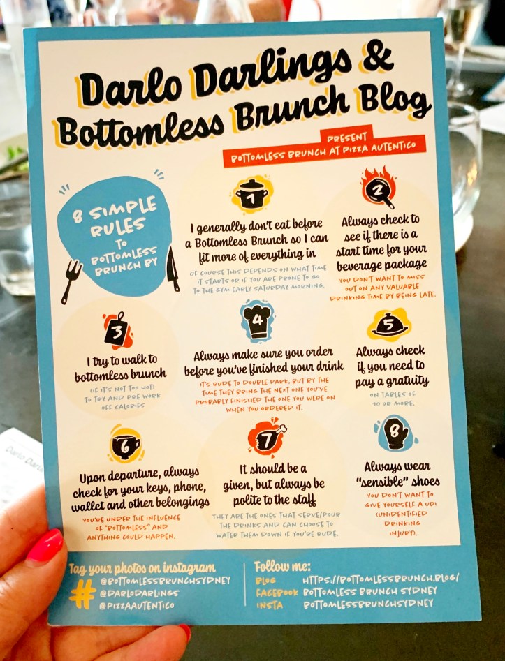 Mike had suggested that I create some rules for Bottomless Brunch so I came up with 8 simple rules to Bottomless Brunch by, a play on the old sitcom 8 Simple Rules for Dating my Teenaged Daughter. (seriously I’m probably the only one who thinks that’s funny!) They’re based on my experiences with Bottomless Brunch so far and I’m sure the list will grow.